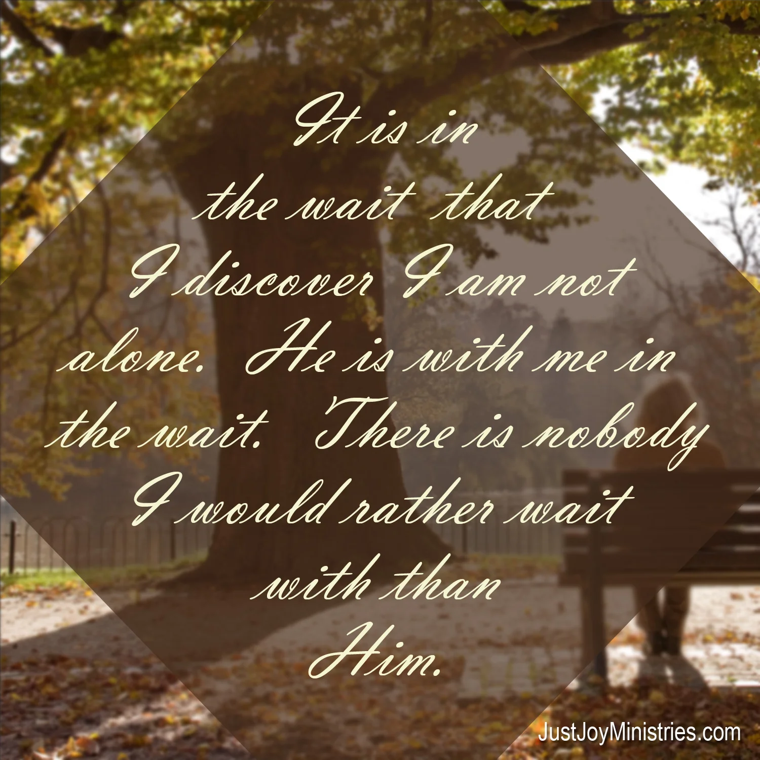 It is in the wait that I discover I am not alone. He is with me in the wait. There is nobody I would rather wait with than Him. There is no one I would rather hang out with than Him. There is no one. Just Him.