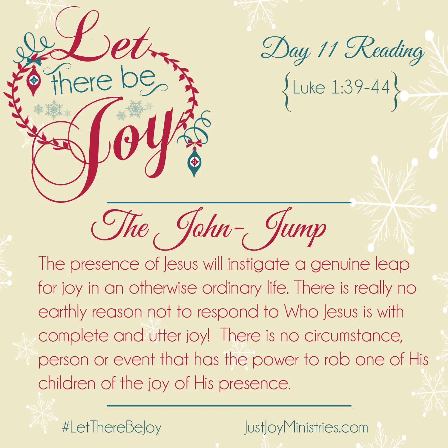 When Jesus walks into our world, into our lives and into our homes, we must respond with complete joy. Our heart should begin the John-jump!