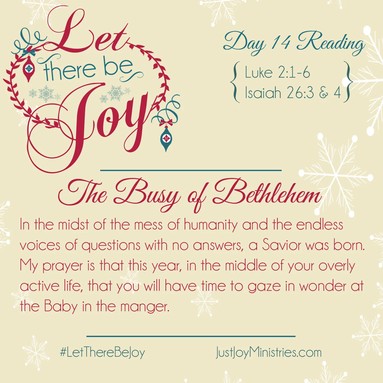 In the midst of the mess of humanity and the endless voices of questions with no answers, a Savior was born. My prayer is that this year, in the middle of your overly active life, that you will have time to gaze in wonder at the Baby in the manger.