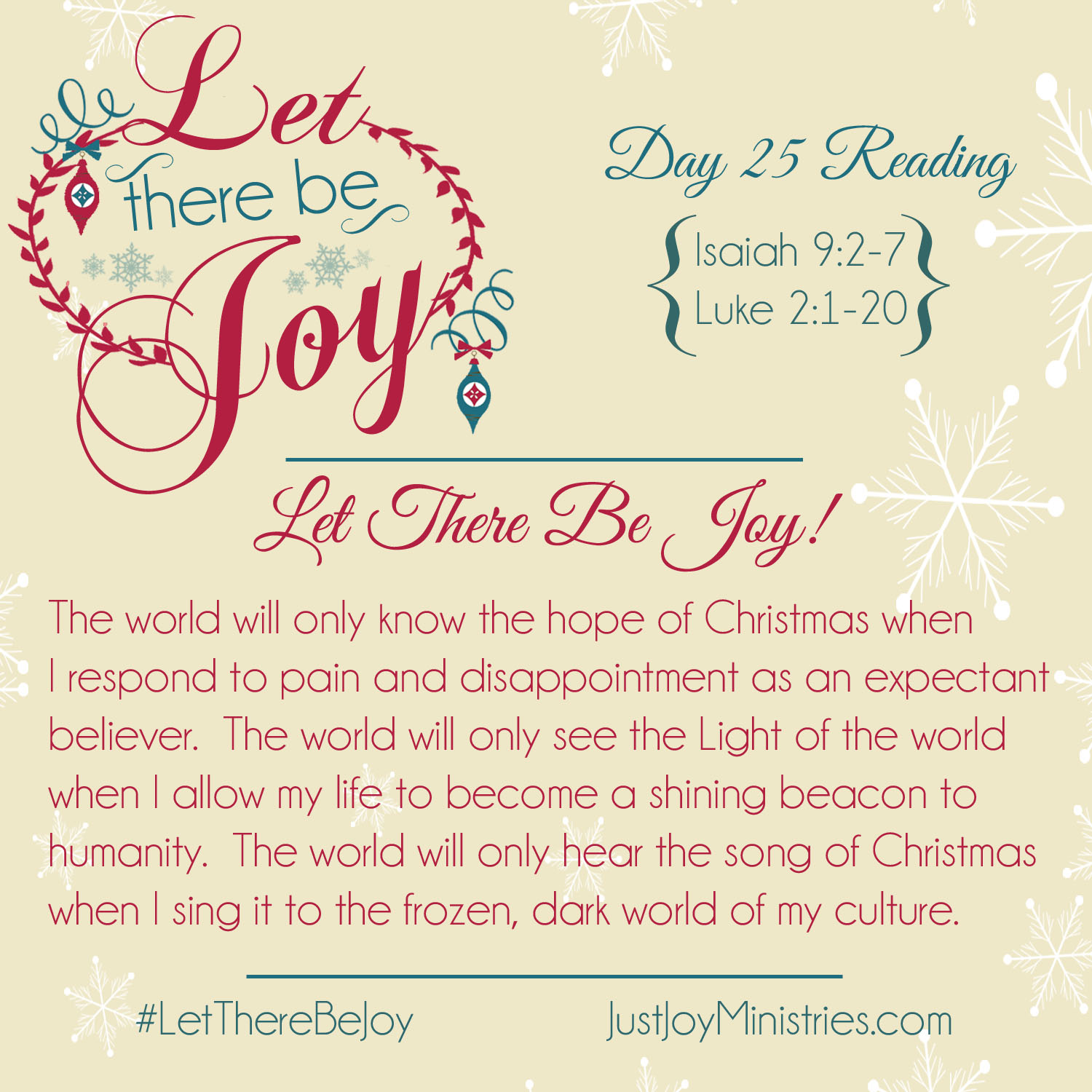 Let there be joy! Jesus has been born in you. God is looking for believers who will be bold enough and joyful enough to embrace the miracle of Christmas not just one day a year but every day of every season.