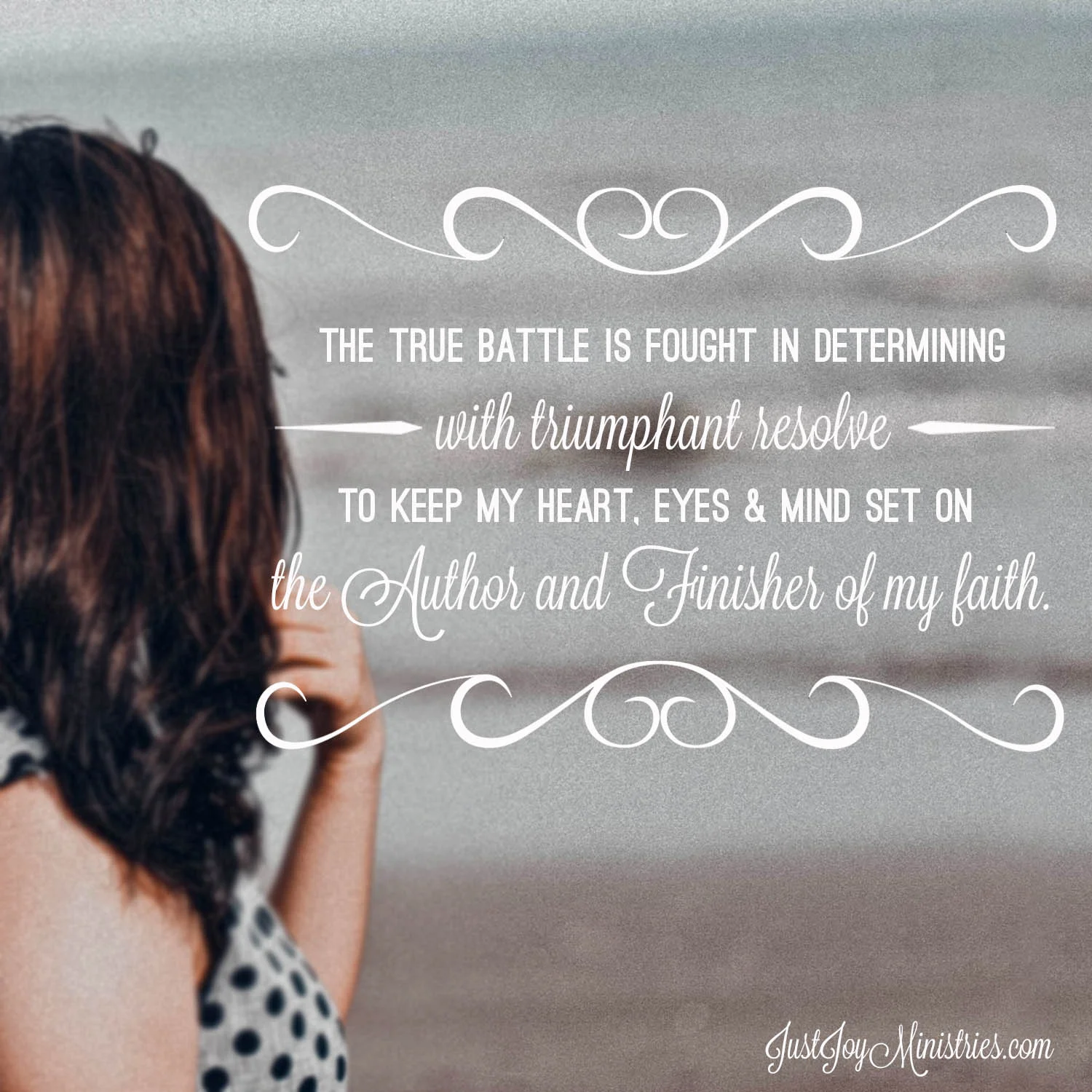 The true battle is fought in determining, with triumphant resolve, to keep my heart, eyes and mind set on the Author and Finisher of my faith.