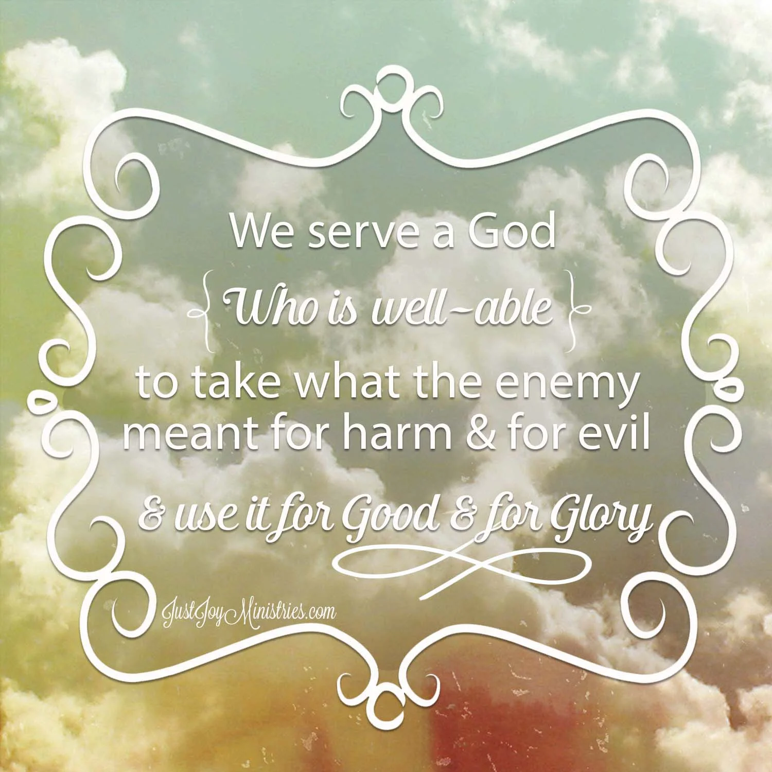 Dear Friends and Readers … God’s forgiveness is more abundant than we can begin to imagine. We serve a God Who is well-able to take what the enemy meant for harm and for evil and to use it for good and for glory.