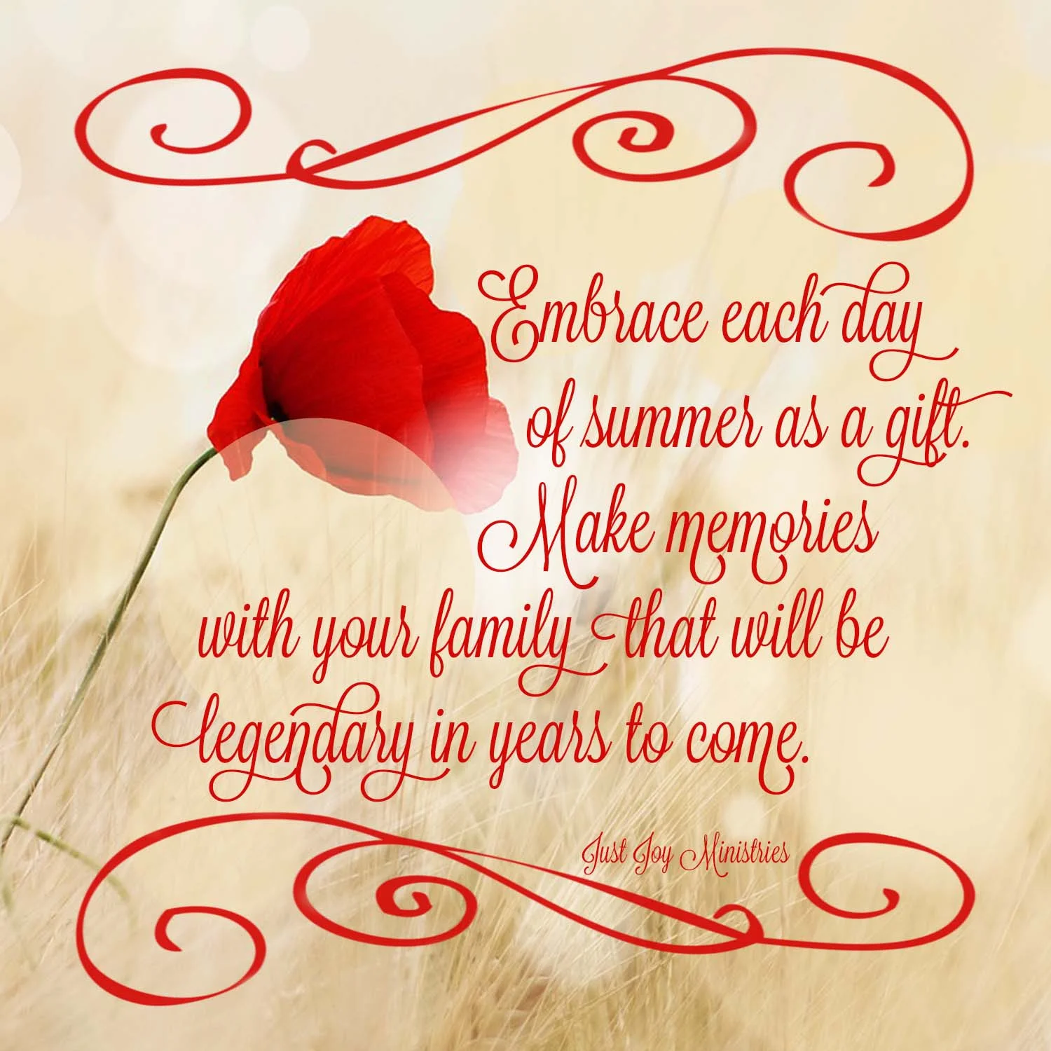 Embrace each day of summer as a gift. Summer is the season when the foundation of family is established on the stability of togetherness, traditions and an abundance of time.