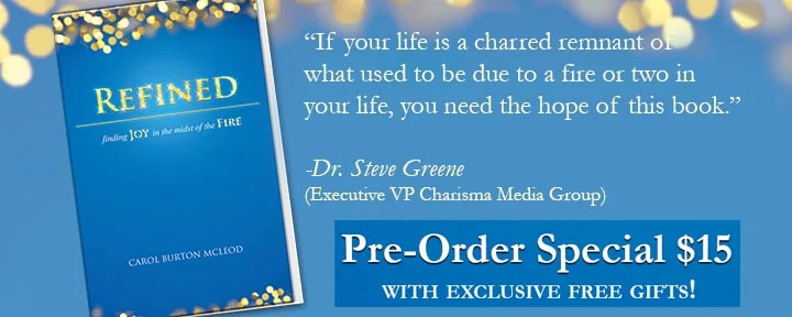 Carol's newest book, "Refined - finding JOY in the FIRE" will be released on September 15, 2015. Be among the FIRST to receive a copy by pre-ordering the book below. All pre-orders will receive EXCLUSIVE FREE gifts as our way of saying, thank you!