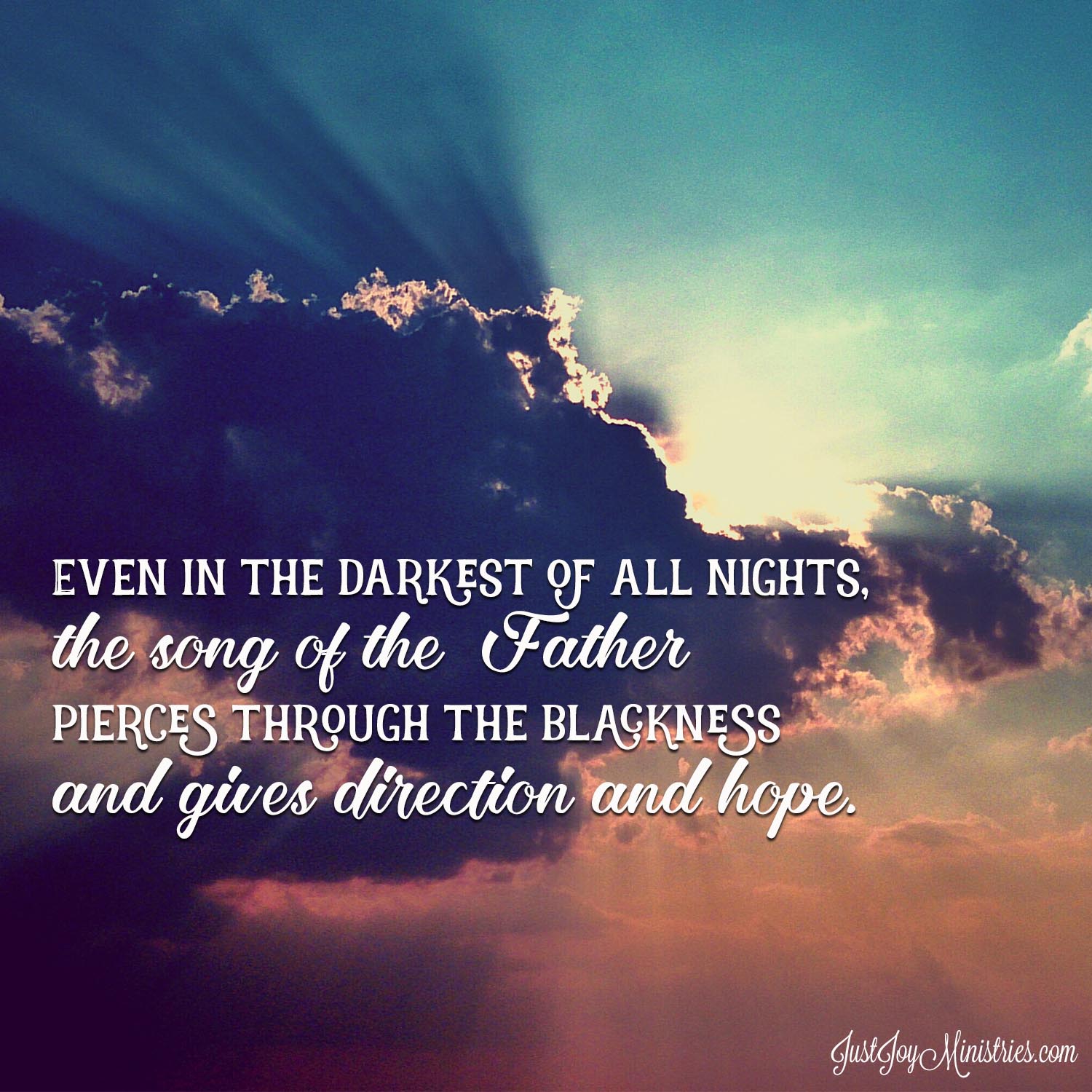 Even in the darkest of all nights, the song of the Father pierces through the blackness and gives direction and hope.
