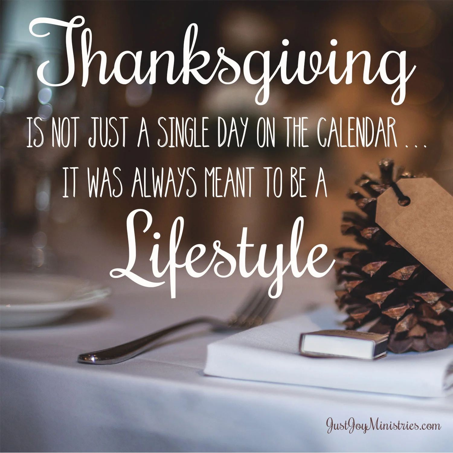 Thanksgiving is not a single day on the calendar but it was always meant to be a lifestyle. Thanksgiving is the particular way that we are able to access the presence of the Father.