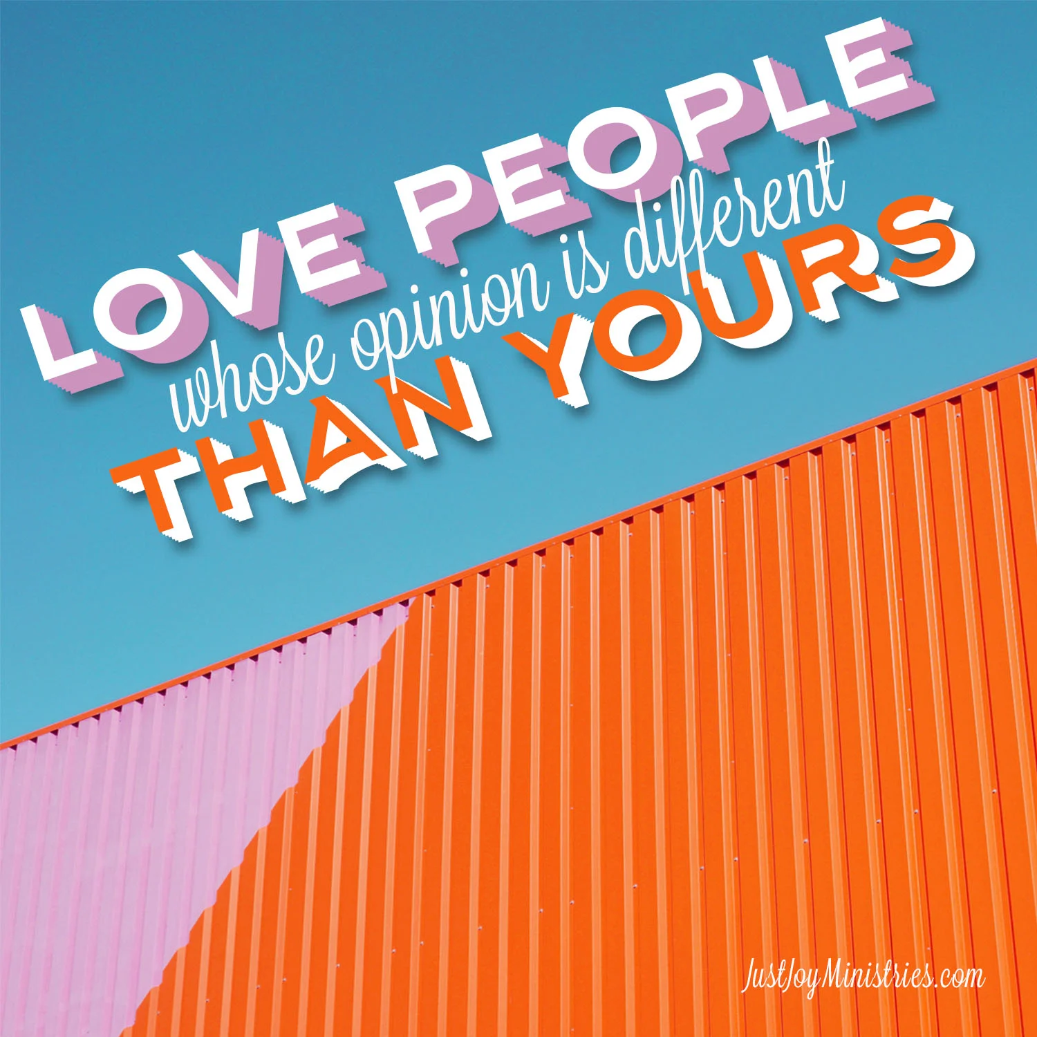 A strongly held opinion of mine that smacks of great advice for your life is to love everybody all the time. Love people whose opinions are different than yours. Develop a warm friendship with someone who voted differently than you did. Show a caring and kind love toward those who get on your very last nerve. Develop a friendly camaraderie with someone whose skin is a different color than yours is! It is, after all, what Jesus did and if I were you … I would try to agree with HIS opinions as much as possible!