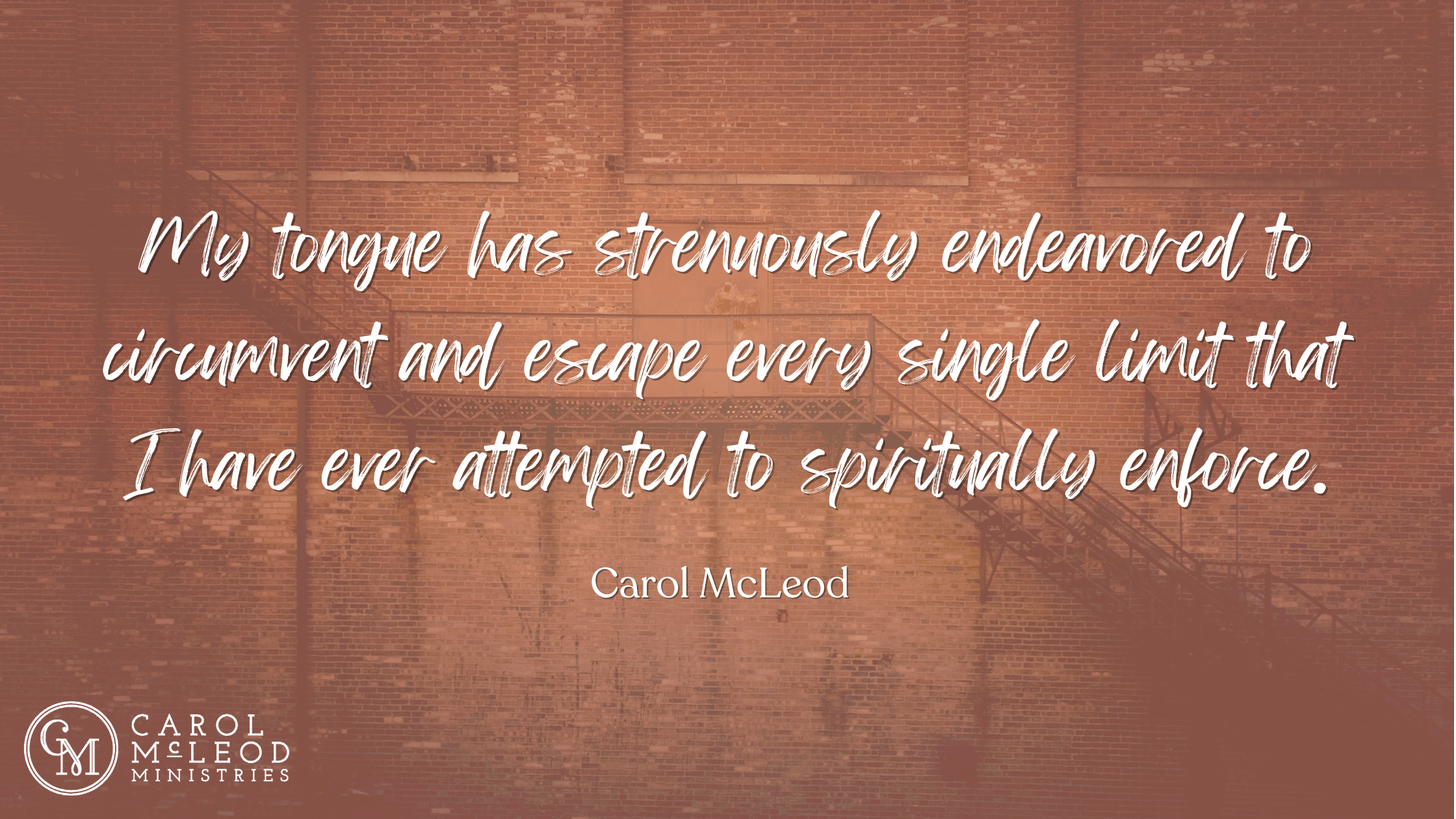 My tongue has strenuously endeavored to circumvent and escape every single limit that I have ever attempted to spiritually enforce.