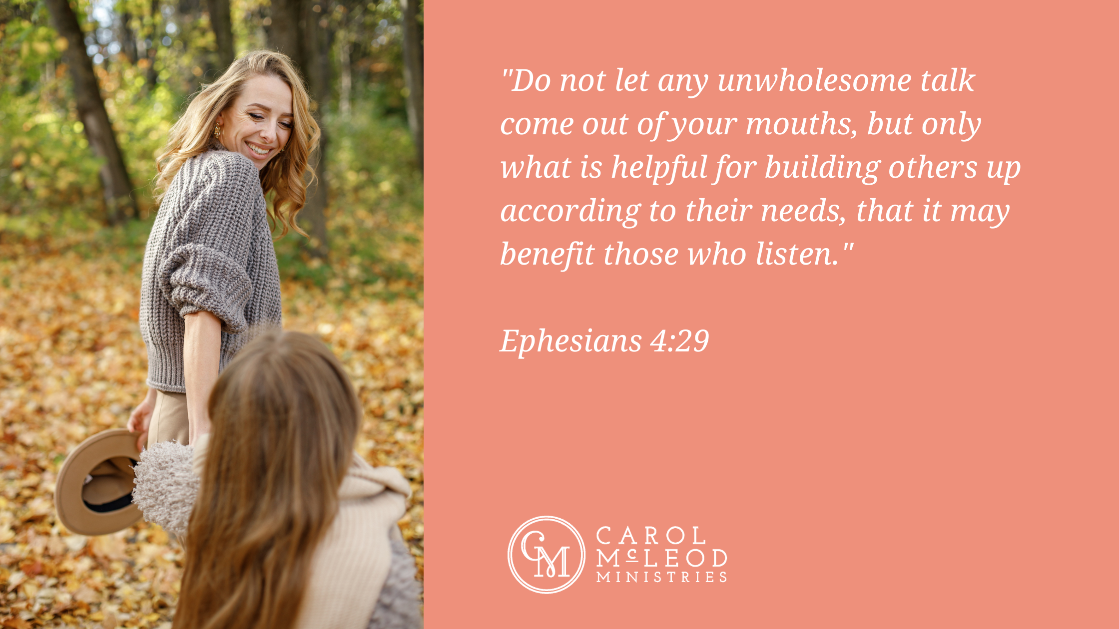 "Do not let any unwholesome talk come out of your mouths, but only what is helpful for building others up according to their needs, that it may benefit those who listen."- Ephesians 4:29