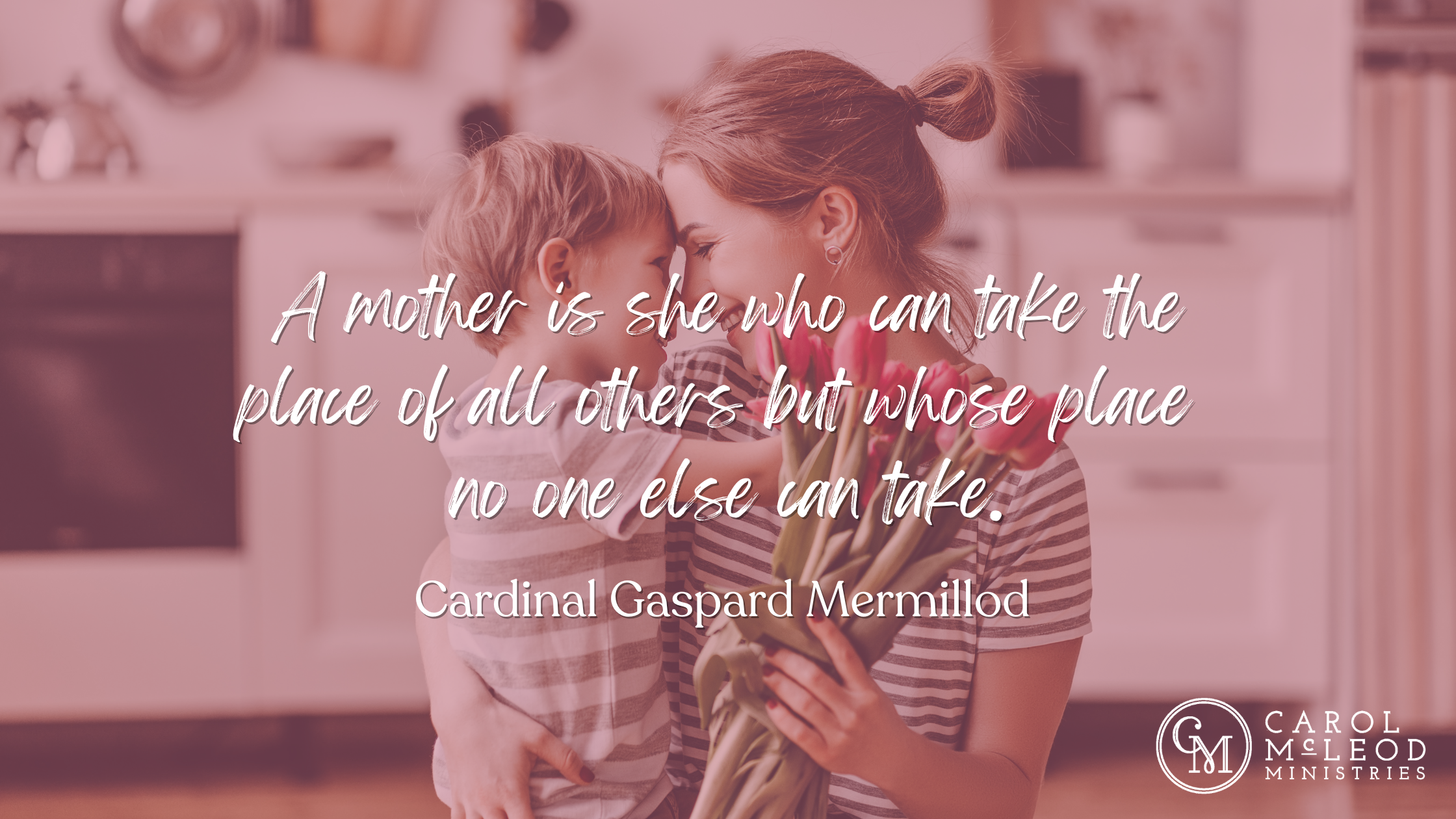 A mother is she who can take the place of all others but whose place no one else can take. —Cardinal Gaspard Mermillod