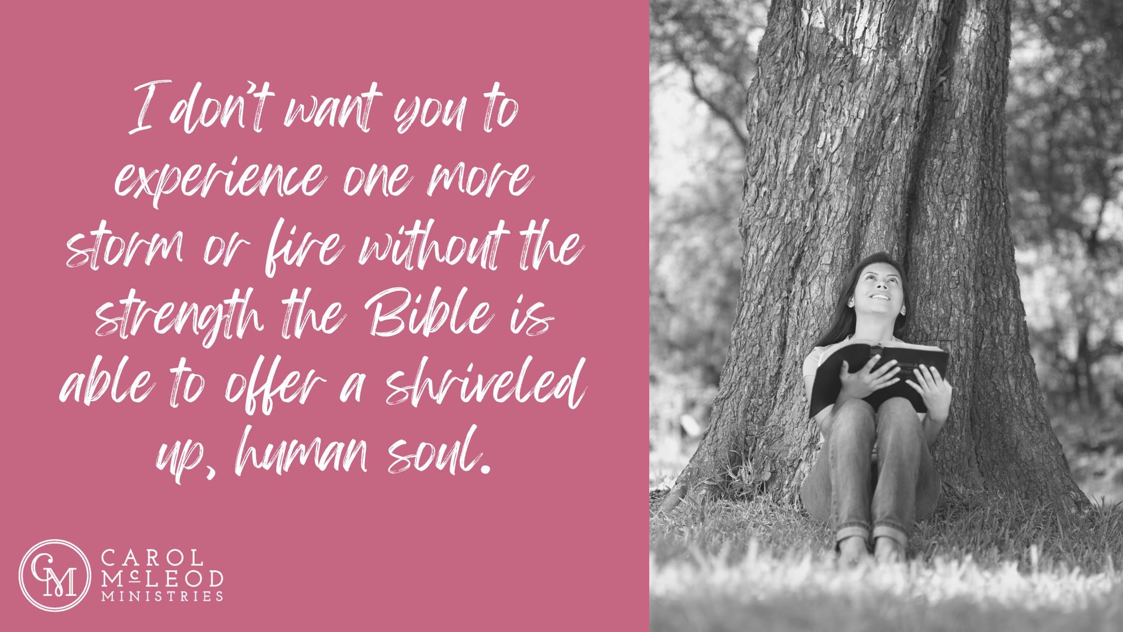I don’t want you to experience one more storm … or one more fire … without the strength that the Bible is able to offer a shriveled up, human soul.