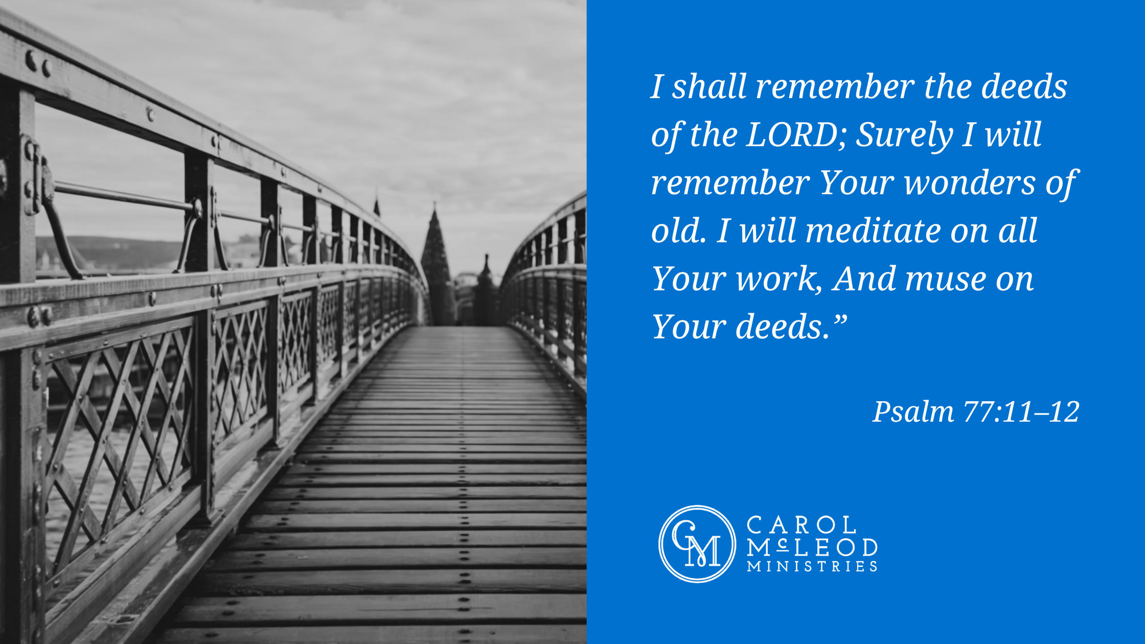 Psalm 77:11–12 says, “I shall remember the deeds of the LORD; Surely I will remember Your wonders of old. I will meditate on all Your work, And muse on Your deeds.”