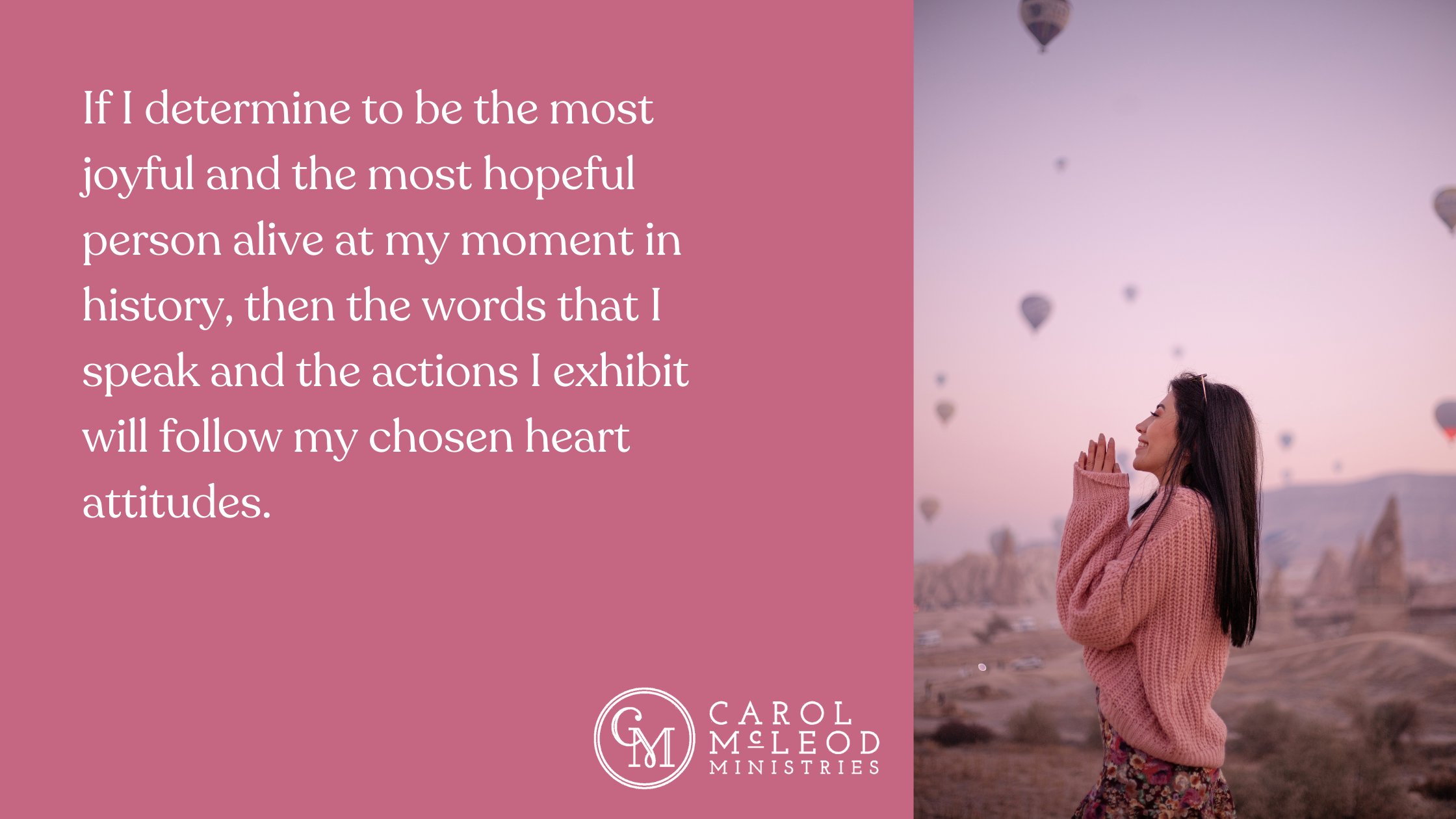 If I determine to be the most joyful and the most hopeful person alive at my moment in history … then the words that I speak and the actions that I exhibit will follow my chosen heart attitudes.